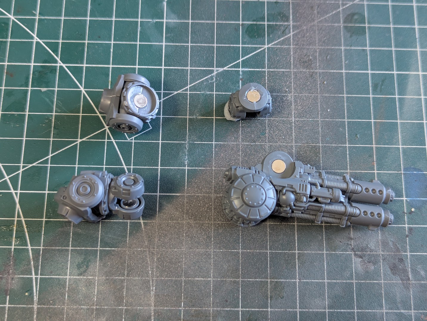 Soggy: Due to a load of IRL stuff going on I don’t have shiny finished models to share here for these, but what I will say is that the gun arms work perfectly fine with a friction fit. I’ve got with the lazy approach like that for now, and will use bluetac for the powerfists when I want them.