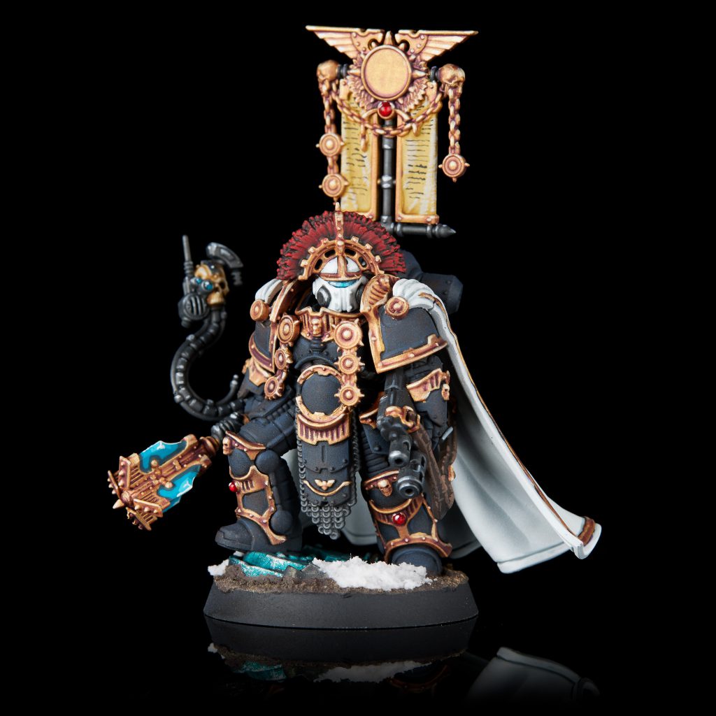 While not as polarizing an appearance as the Praetor, I don’t think it’s a good choice for the launch box as it’s too distinct. It’s covered in an exhausting amount of trim, and the only head options either have a giant broom or are bareheaded, and you have no choice but to put an overly baroque back banner on. For some legions, that’s perfectly fine – I think this would make a good Ultramarine or decent Blood Angel. For other legions, like Raven Guard or Alpha Legion, I think it’s too baroque for their more stripped down aesthetic.