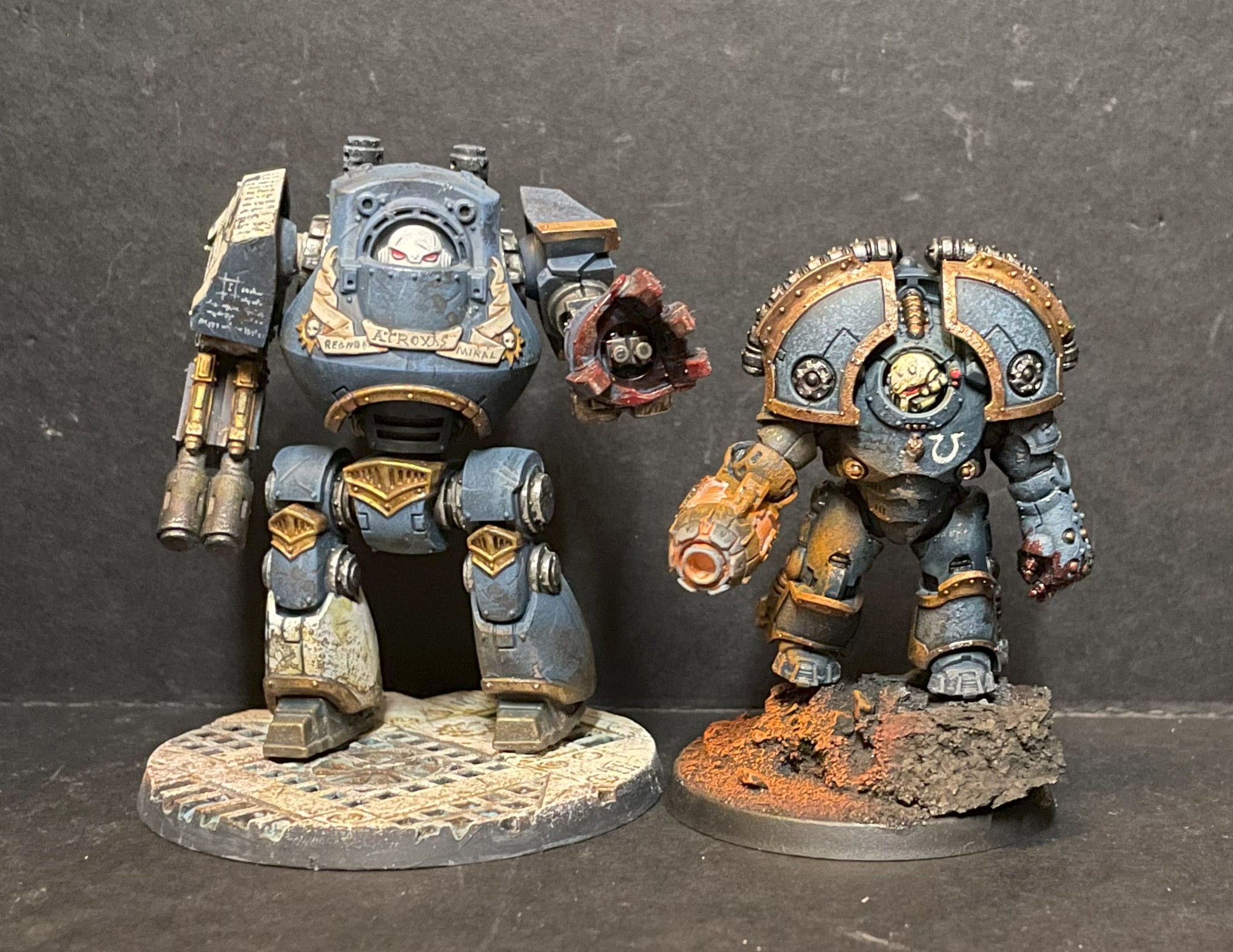 There’s a lot of parts here, and the build is more similar to the Leviathan or the Contemptor than to other infantry. You’re making a large hollow box, as you would a vehicle, and building onto that. They are definitely min-dreadnoughts in size too, not far off the height of the old metal boxnaught, towering over even the characters in the Heresy 2.0 launch box. I’ve based mine on giant hero rocks to accentuate this because I think it’s funny, but they are *huge* even without the rock!