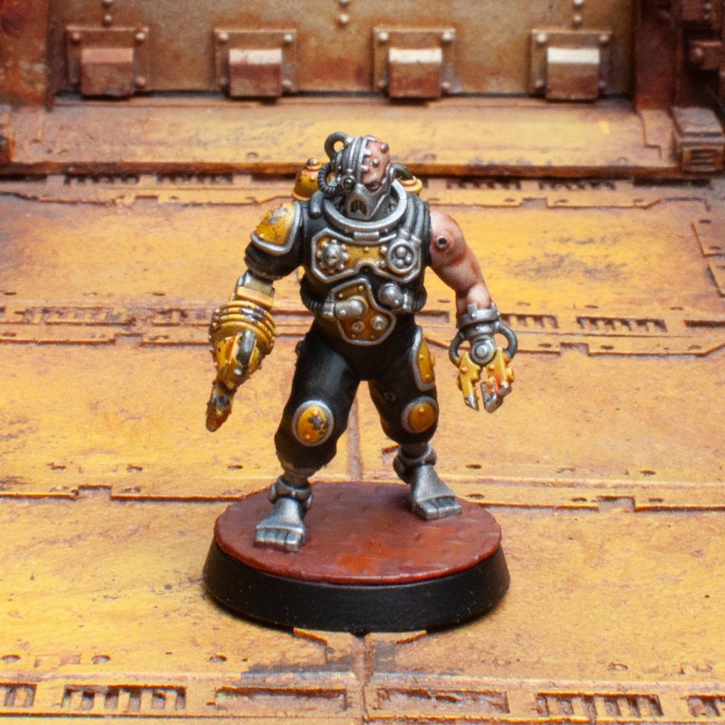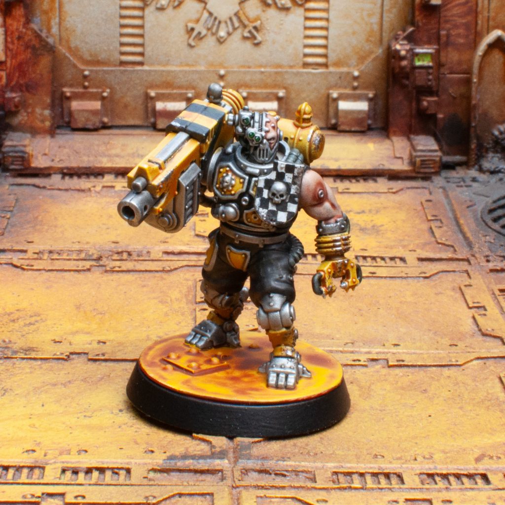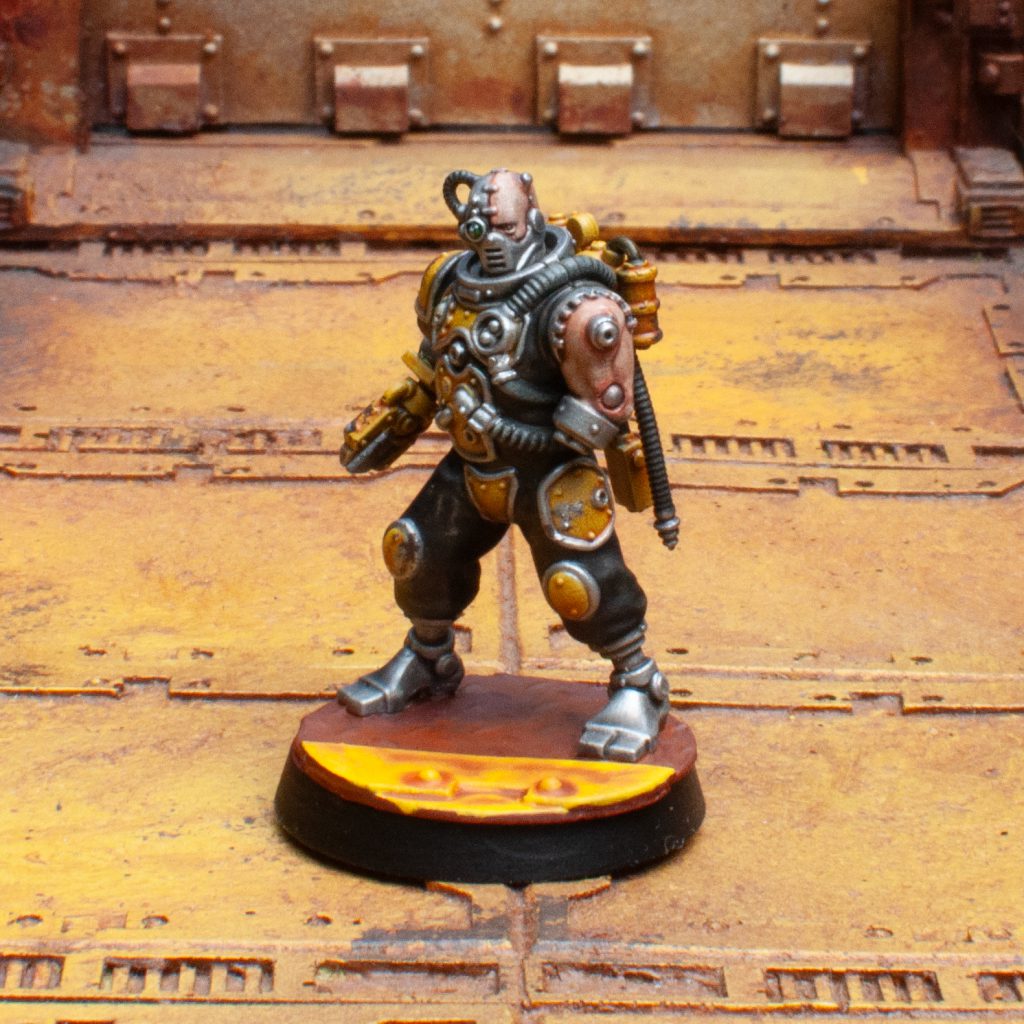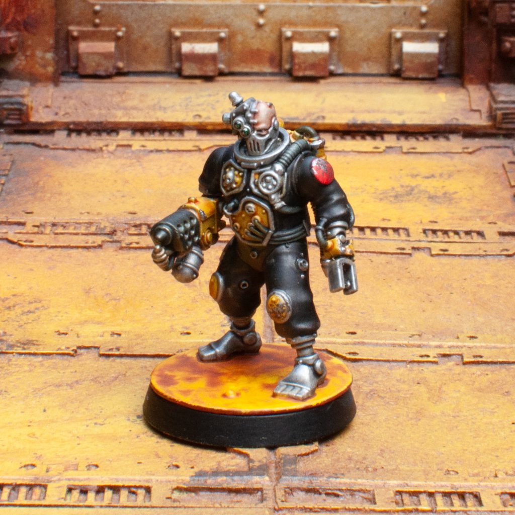DYLON: I couldn’t help but do some small conversions to these guys. I figure they’ll show up in my underhive either as civilians in Downtown Dustup or some other flavor of NPC. As such, I wanted to model them more as a servitor work crew. Their only weapons are the flamer (great for clearing out vents), and the Lascutter… which also feels pretty appropriate for underhive work. Everyone else has claws, clamps, or whatnot. I converted one of the larger Servitors with the metal servo claw from a long-OOP Servitor. With a little cable added, it fits pretty nicely.
