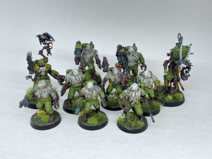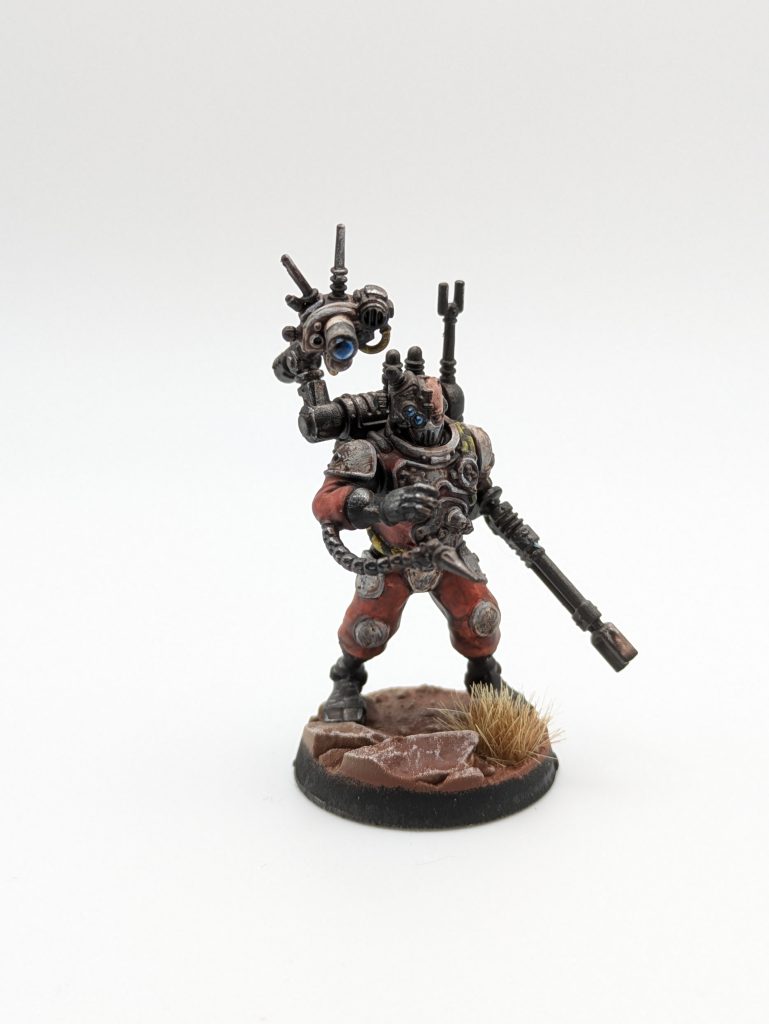 COLIN: I went quite a bit further with my converting/augmenting of aforementioned weirdos. I’ve always found the Mechanicum to be a compelling faction in both lore and model range. They are just so otherworldly and bizarre and I decided to lean into that. I built the kit pretty stock, with the notable exception of wrapping their heads in burlap. Set as feral Mechanicum on a verdant world, maybe the organic components had degraded? Maybe I was coming off a couple of pulpy horror novels and didn’t want to paint faces and all that jazz.