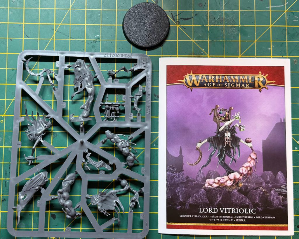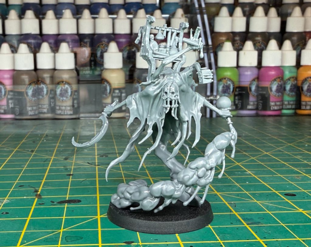 The smoke trail from the poison bottle the Lord Vitriolic is swinging cleverly forms a second mounting point to the base, meaning that the model once finished feels very sturdy. I did have one slight issue connecting his sickle forearm into the robe piece, it’s a small contact point and doesn’t have very solid retention so I ended up having to try a couple of times and leave it to dry properly.