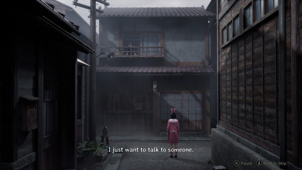 Ebisugaoka is cramped, claustrophobic, and despite the fact that I can see the sky, it doesn’t reassure me that I’m actually not trapped in a tight and dangerous maze. The first thing I realized in the middle of my first playthrough was how absolutely massive the city actually is, and the oddly thrilling mixture I had in my mind of how much that meant I had to explore and also how unsettling it was that I’d have to cover all of that space without knowing what to expect or what might jump out at me.