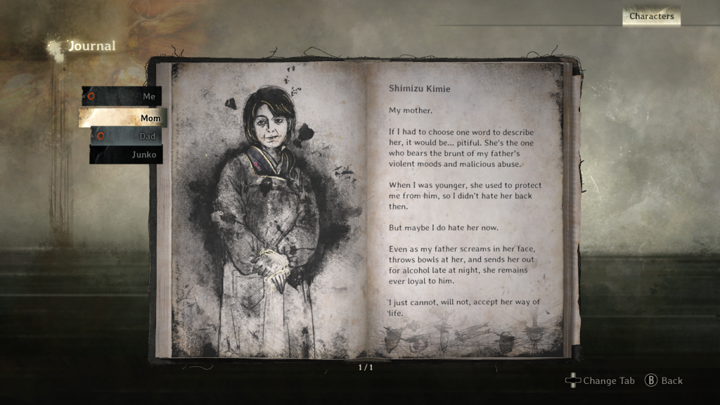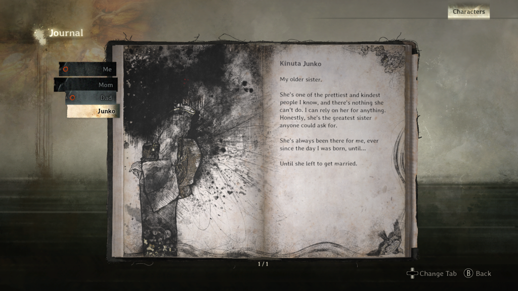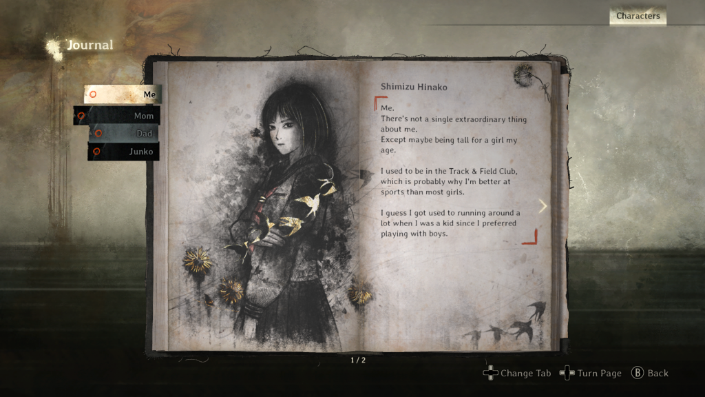 One of the first things the game asks you to do when you gain control of Hinako is to look at her journal. I cannot stress enough how many people I have seen say that Hinako has no personality or the game story makes no sense who then also admitted that they have never looked at the journal, and I wish to remind you, dear reader, that I literally just talked to you about poor media literacy in the general population. Hinako’s entire personality comes from two things: her interactions with other characters, and the detailed journal entries and drawings that she makes as the game progresses, many of which are where her voice is truly found.