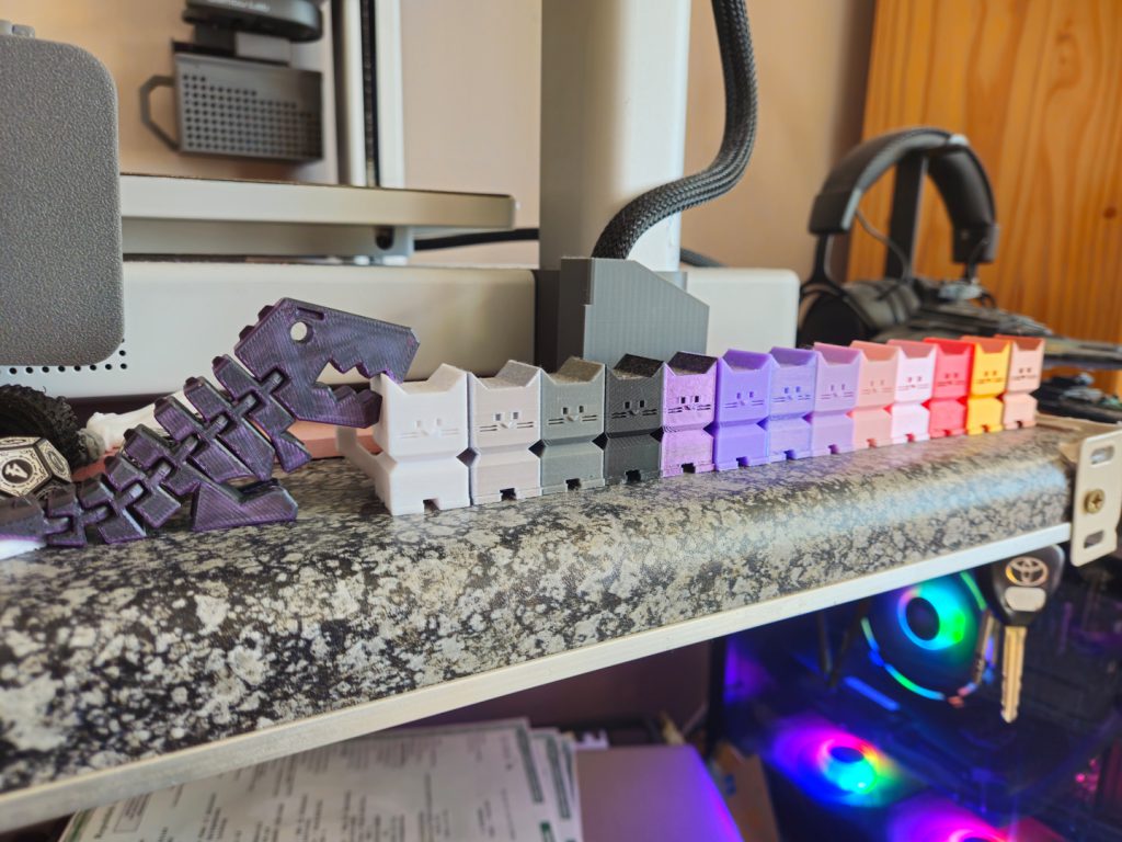 My A1 arrived in November 2024. With the exception of a few weeks away from home, it’s seen almost daily use. To date, I’ve printed upgrades for the machine, modular storage, toys, desk stuff, and this adorable bastard.