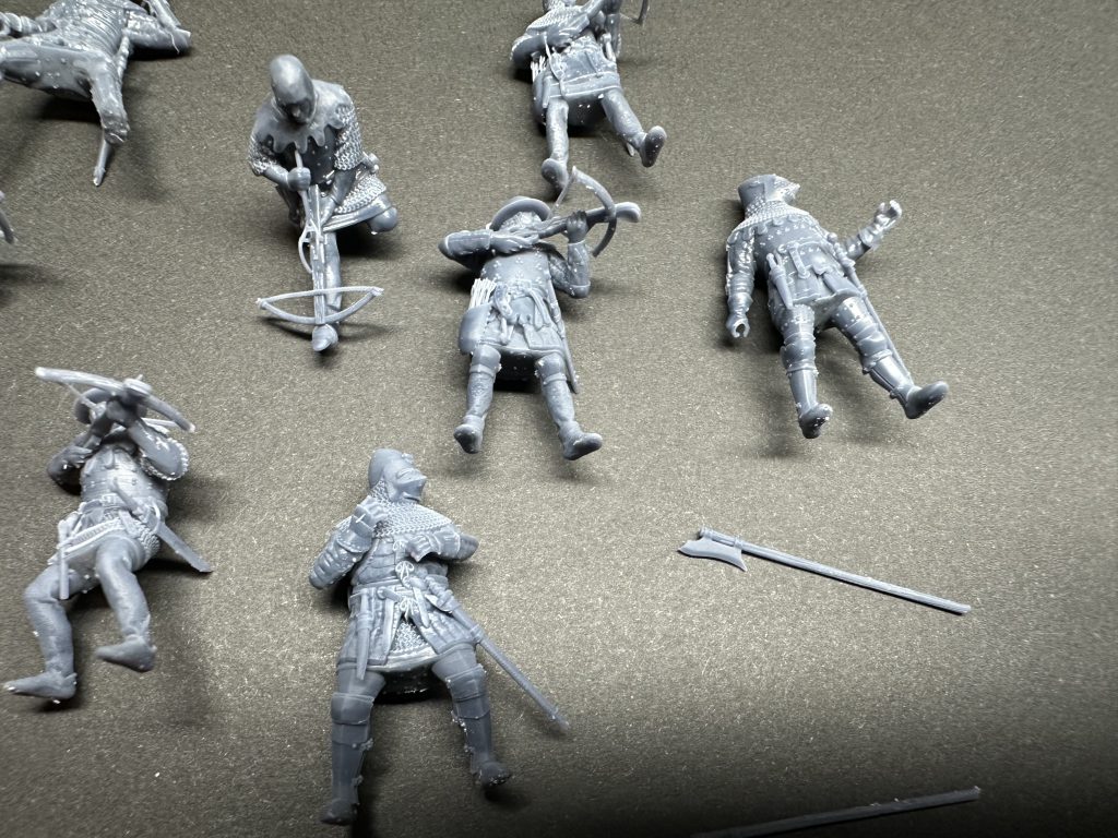 Reattempting my resin tuning experiment, I grabbed some Chivalric knights with an array of weapons. Perfect models to showcase the various materials with cloth, leather, plate armour and chainmail all being used. I stuck to the default cure times for the Elegoo Standard 2.0 Resin and used recommended tuning times.Â