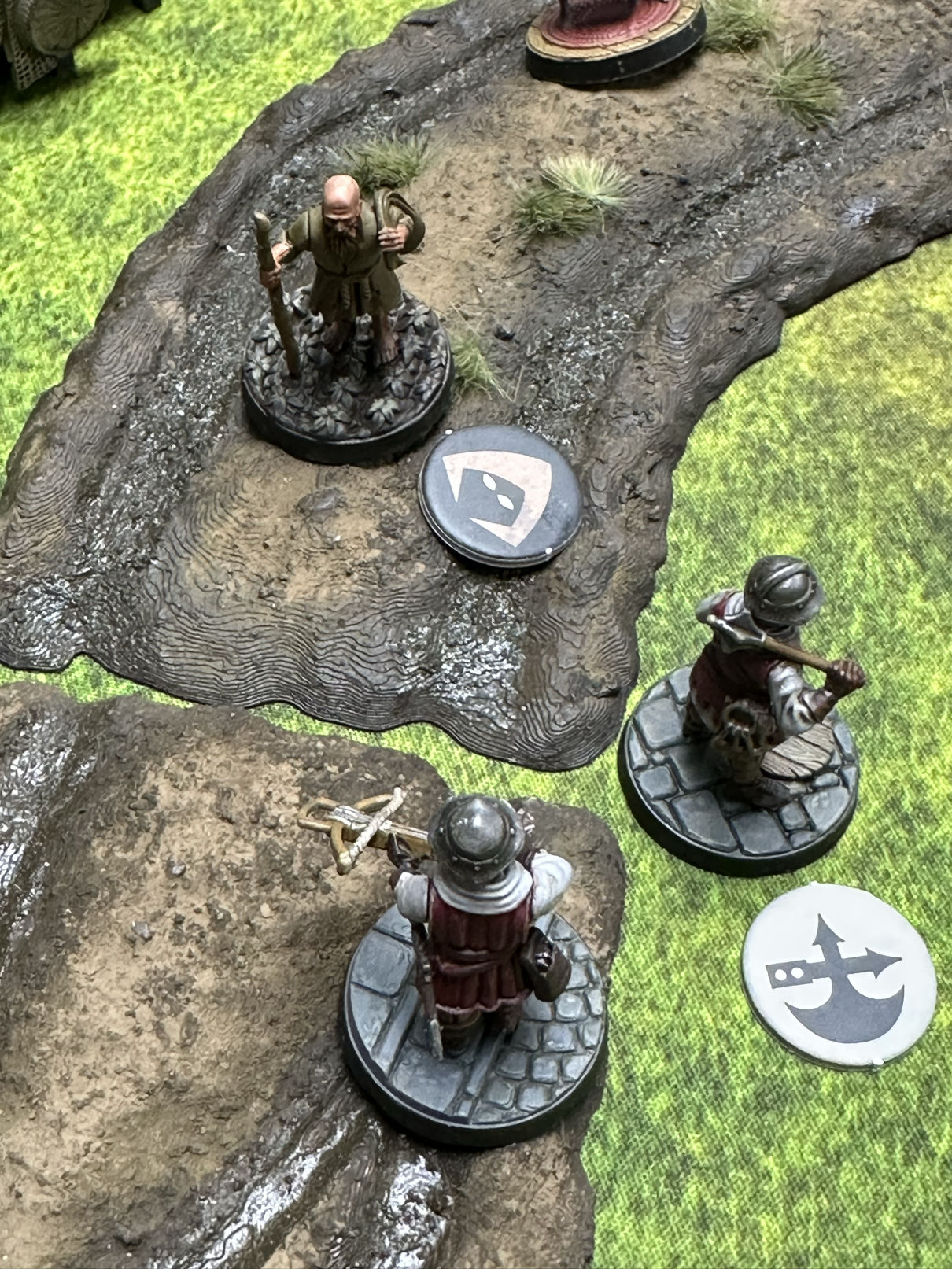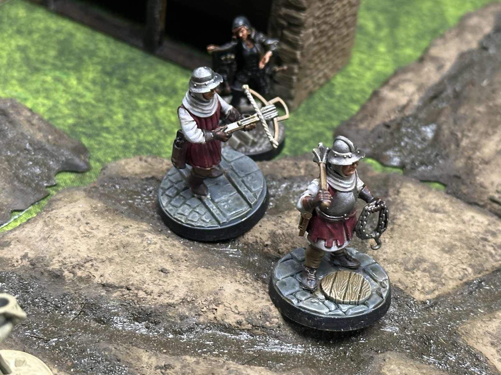 Generating your guard squad is very…vibes based. There is a points system, but it’s both fairly vague rather than being super granular based on what equipment you have, and if you’re using the starter set, which is all you really need to play the game, you can dispense with it entirely, as most of the things that cost extra points, notably guards on mounts and guards with attack animals, aren’t in that core set. Generally speaking, you want a variety of different weapons. A crossbow is lethal, and very useful for taking down dangerous suspects, but if you have to subdue someone it’s absolutely a liability. The same goes for swords. Similarly, a guard armed with a chain or mace might be better at taking subjects alive, but will struggle with someone that has lethal intent. And honestly, the rule of cool is very much in effect here.