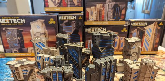 Despite often being played on a flat map, I like Battletech a lot more with terrain. Hextech is making it available to people without their own printer, and I’m reviewing their first release.