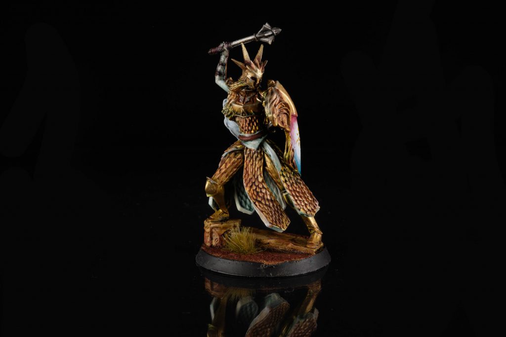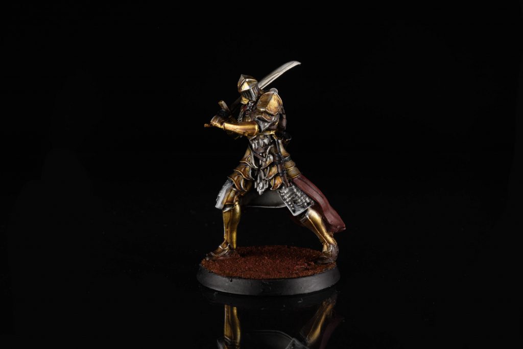 - Fine edge highlights with the yellow gold mixed with a silver colour (I used VMA Steel)