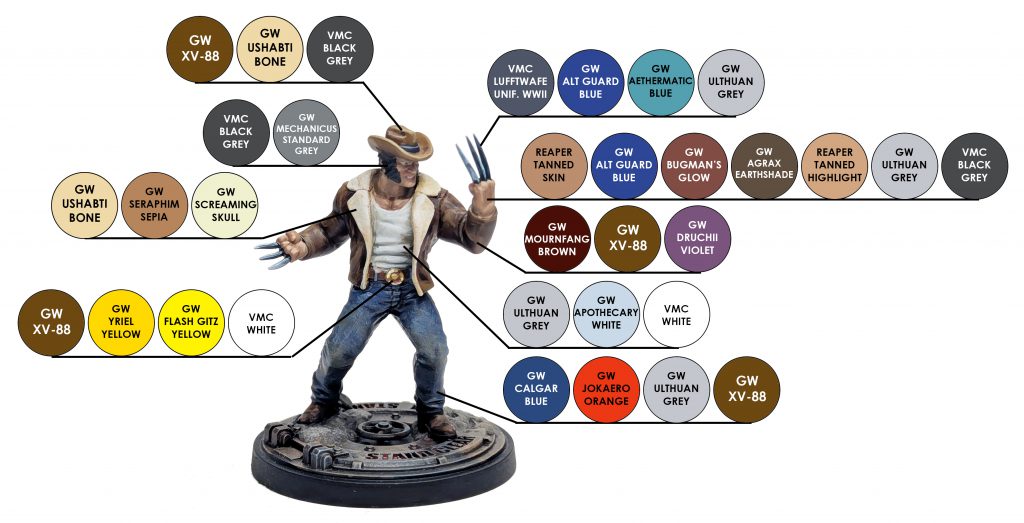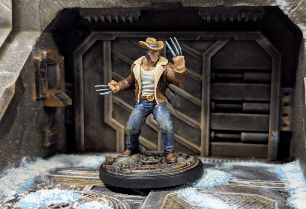 Alright, let’s move on to our man Logan. This version of Logan trades in the yellow spandex for his trademark leather jacket and jeans as well and can sport either a cowboy hat or bare head. I went with the hat, since I feel it makes the miniature more interesting.