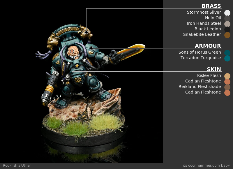 Uthar the Destined - Rockfish's Method The big “Faction Warmaster” character for the Leagues of Votann is Uthar the Destined, the most accomplished her of the Greater Thurian League. While I did most of my dorfs in my own scheme, I did this guy up in the canon scheme for him so he could turn up in a WarCom article. While I think I prefer my scheme, this one was fun as a one off and would be great as a full army!
