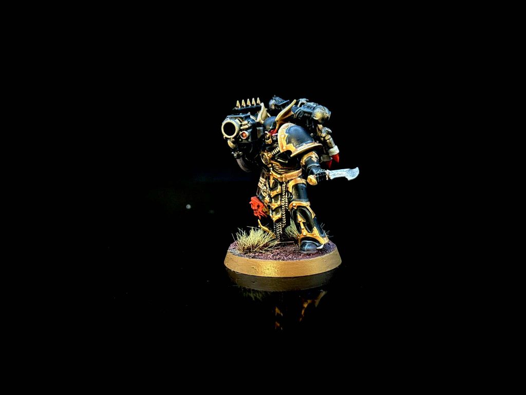 On the one hand, I’m extraordinarily happy with how this Warrior came out. Sure, he may be the least exciting dude on the team rules wise, and may not get to see much time on the table, but he’s a showcase of my skill as a painter. The highlights came out just the way I wanted them to, and the brightness of the red adds a very complimentary burst of color to the black and gold. Coupled with the freehand, I think it’s one of my better models in recent memory, and one of the most fun to paint to boot. On the other hand, I’ve opened Pandora’s hobby box here by giving one guy on the team freehand decals. Now I need to give them all lightning and Black Legion markings, or this one dude will stick out.
