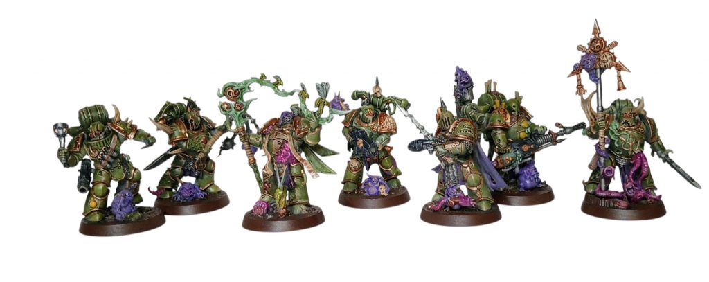 I’ve played Dave a few times now either at the weekly game nights at Goldmine Games or at local events, and each time he’s been a lovely opponent. Our record against one another is pretty even as far as wins and losses go, which is great for me and practicing with this new team. He’s on a new team too, and my heart sinks a little when I hear what it is- Plague Marines.