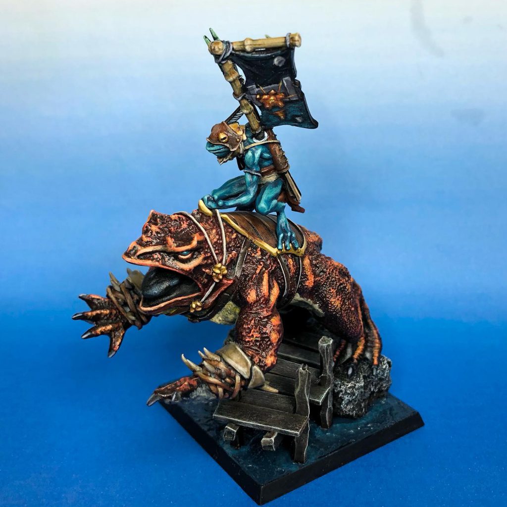 Firstly, it has Aura (Vicious – Amphibian only) which makes this frog-chief an auto-include in any frog army. Even if you have one horde of Riverguard Dambusters, the Sentinel is worth taking just to make sure they get the job done. Secondly, the Sentinel is Inspiring, so it has a purpose following the army. Finally, it has Fly and Speed 7, so it can hop anywhere it needs to be, and keep up with your froggy forces.