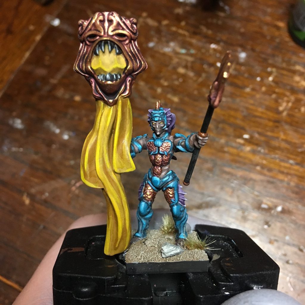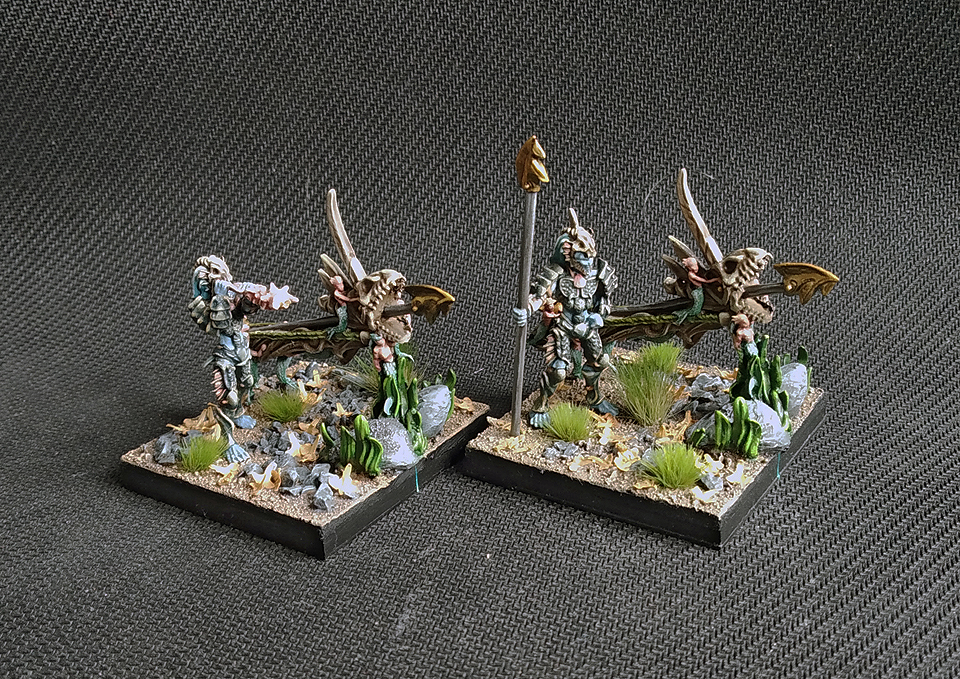 The only downside to Placoderms is the lack of models from Mantic. We know what they look like thanks to their Hero representative, Eckter. I have taken Salamander Primes and given them spears (from Etsy) and tail fins (Milliput), but this was a lot of effort. Perfectly reasonable to find alternatives that match the ultraarmoured seabeasty that they are.