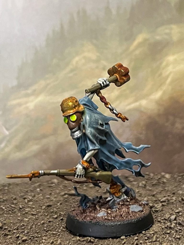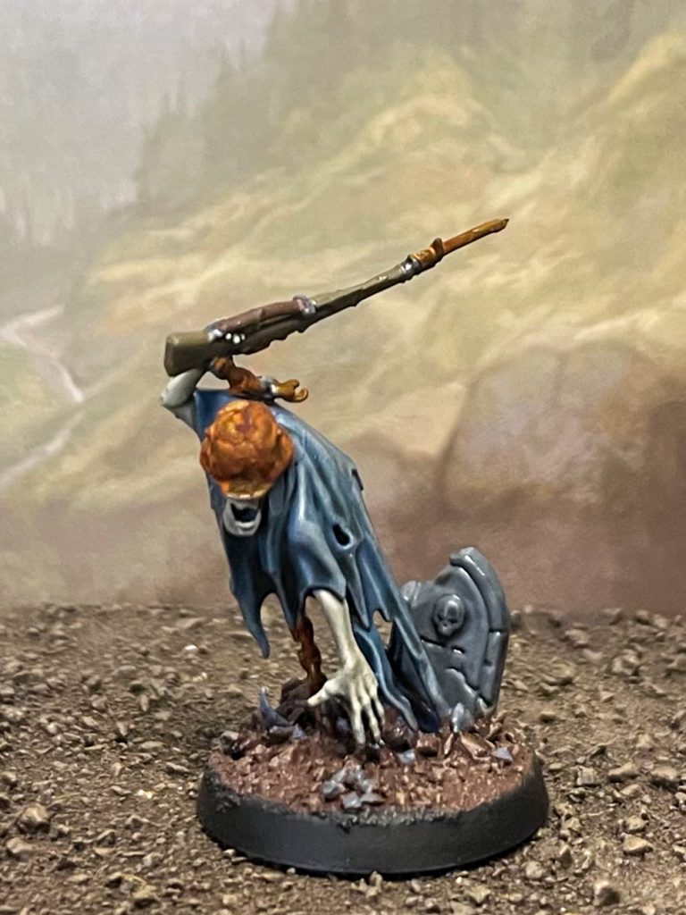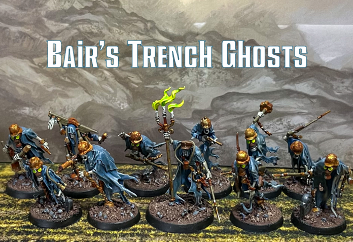 Originally I painted a Trench Pilgrim warband, the official models, in brighter-than-normal colours and then decided I should probably read some rules. Thankfully,my existing models that I put together, somehwat haphazardly, probably work out as a legal warband. Probably. I found out that each faction also has a series of sub-factions that add various restrictions but also new options. The one that immediately caught my eye by name was the Heretic Legion’s Trench Ghosts. That just sounds rad as hell. I had a mental image of ghosts floating around no man’s land. Grey whisps floating across the battlefield wielding the arms and wearing the bits of armour or gear that they died with. Uncertainty creeps in to the mind about just how “real” these beings are.