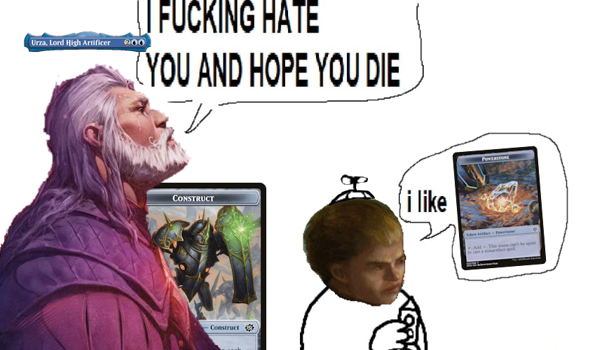 Unlike a lot of artifacts-matter Commanders, lil Urza is more concerned with them leaving your hand than entering the battlefield. When you do discard an artifact for the first time each turn, however, you’re rewarded in the form of a Powerstone Token; unlike Treasure, these stick around as functionally just vanilla mana rocks, with one big caveat. The mana they produce is limited from being used for non-Artifact Spells…oh the horror. This of course means we can use it to pay for abilities, cast artifacts, and more, but notably without a means of translating it like Basalt Monolith this spare mana cannot be pumped into things like your interactive suite of Instants & Sorceries, barring the Improvise on cards like Archway of Innovation or Whir of Invention. Still, when about half our deck is Artifacts, we’ll not have issues using this extra mana, nor getting plenty of triggers from Urza.