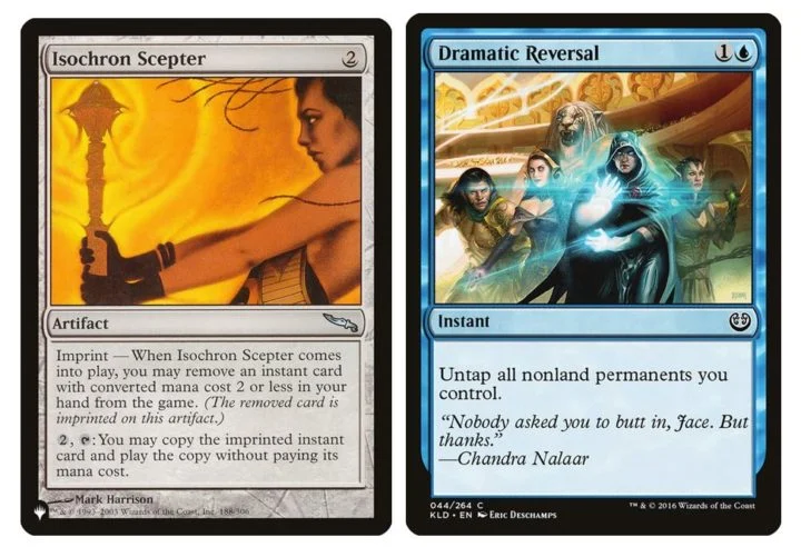 Combining Top and Reality Chip alongside a cost reducer like Etherium Sculptor draws the deck, and from there we can access one of our kill conditions. This can also be achieved by way of looting with the classic, too-slow-for-cEDH Dramatic Reversal+Isochron Scepter, which is good enough here with the fact that Urza both makes mana rocks for the loop’s requirements, and himself loots through the deck when performing the combo. Both of these combos are accessed primarily through Artifacts, although ‘Dramatic Scepter’ is a bit harder, requiring an Instant.