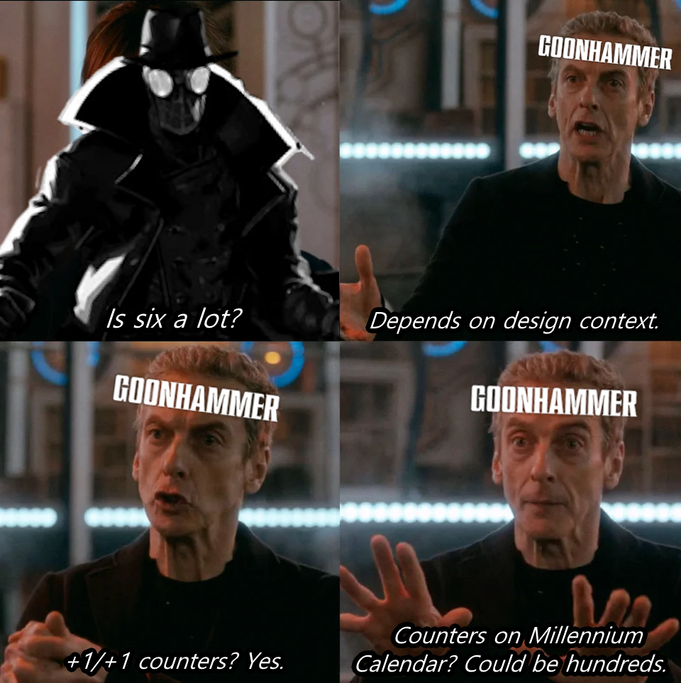 This is what is referred to as ‘design context’, the way that those behind the curtains are able to juice or dampen the potency of cards in relation to their strength with respect to other existing tools. That’s a bit of a mouthful, but it’s easy to explain if we look at a recent example, Ambling Stormshell. The number of viable Turtles in Magic is small, and the problematic repeatability of this card is similarly low (unless they suddenly release a Turtles-matter set in 2026). The degree to which this card could be ‘pushed’ in terms of its power is quite high, because its synergistic pieces are quite weak. The power of a card is only as high as it can be in its best possible context; this leads often to cards which seem absolutely busted, but because scaffolding doesn’t exist to exploit them, they fail. In much the same vein, Noir is allowed to track any counters because the expectation is that it likely caps out at around ~6, or in the case of spaceships, maybe up to 12ish. For permanents eventually intended to become Creatures, this is all well and good, but there’s a suite of options not likely to swing out which stack counters quite a bit higher.