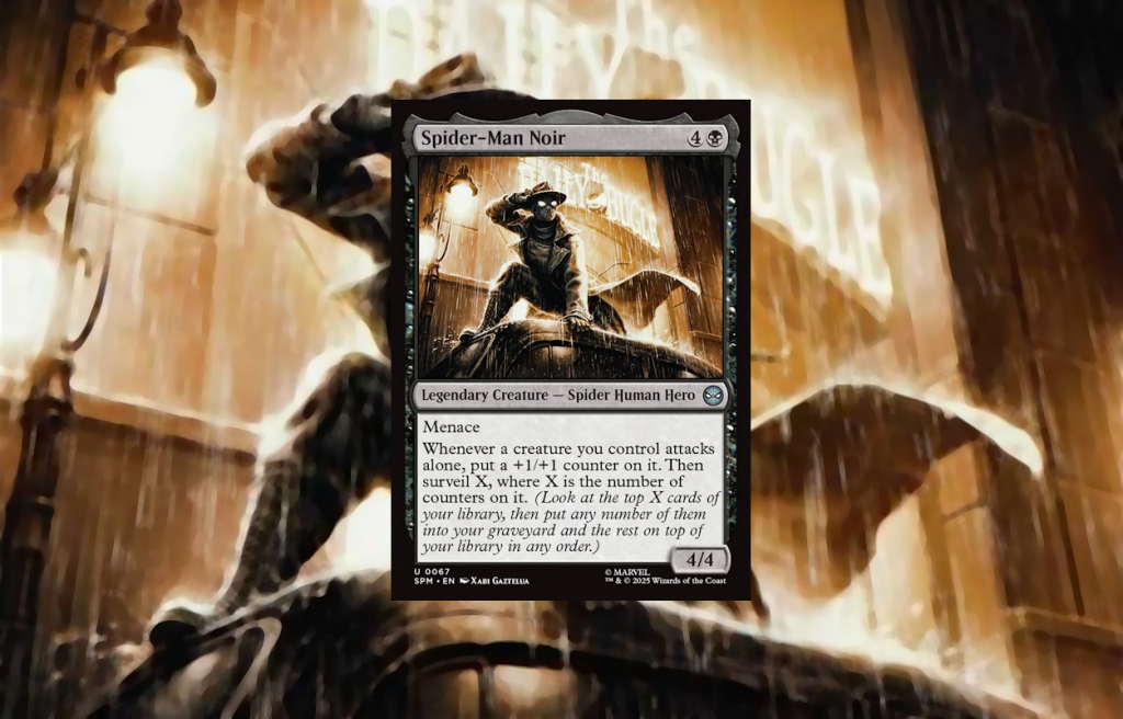 We’d like to think that the designers of our favorite card game know what they’re doing. Of course, they’re getting paid to put their heart & soul into every piece of cardboard, and ensure we’re getting the most fun out of these exciting, novel game pieces. Magic, however, is a game with more potential outcomes than atoms in the known universe, and for whom legal Commander decks are realistically uncountable. For this reason, sometimes interactions slip through the cracks; to err is human, and in a Legacy format, the card pool is so deep that only those with sufficient Scryfall-fu can deliver on the deepest cuts. I fully believe that Spider-Man Noir was created with the new Spacecraft from Edge of Eternities in mind, and with them you’re going to surveil plenty—far more than most +1/+1 counter-oriented Creatures. That being said, I’m here not to merely gesture at a reasonable amount of surveillance, with a reasonable amount of counters; we’re going to do our best to go beyond intended design context, and push this effect to its limits. Strap in, because it’s going to get janky.
