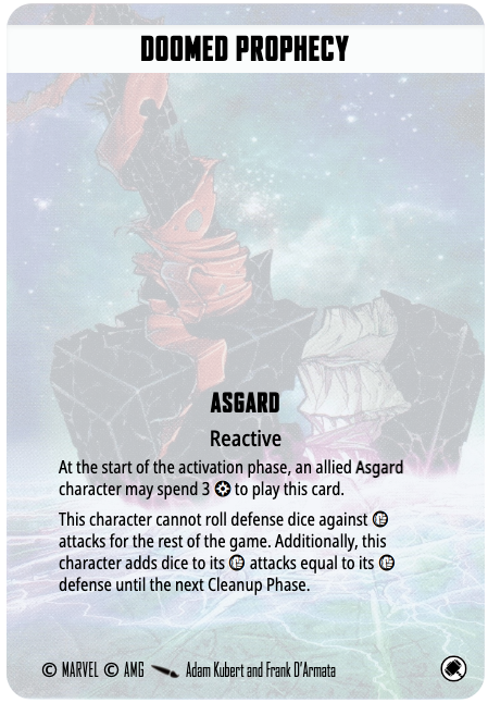 Lady Sif with her rerolls on physical attacks can be an absolute force of nature with Doomed Prophecy at her back. A nine dice builder or eleven dice spender with the possibility to reroll any dice is close to the efficacy of a Helios Laser.