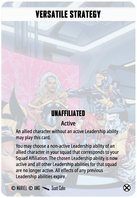 There is a strong play into opponents that want to stack conditions on Asgard: essentially, leverage Jane or Loki’s dice rerolls as long as possible. Then, when Asgard starts to get staggered, shocked, incinerated, stunned, or slowed (or anything that is particularly annoying to the game plan), play Versatile Strategy to switch to Thor and start removing those conditions and enhancing the survivability of the team.