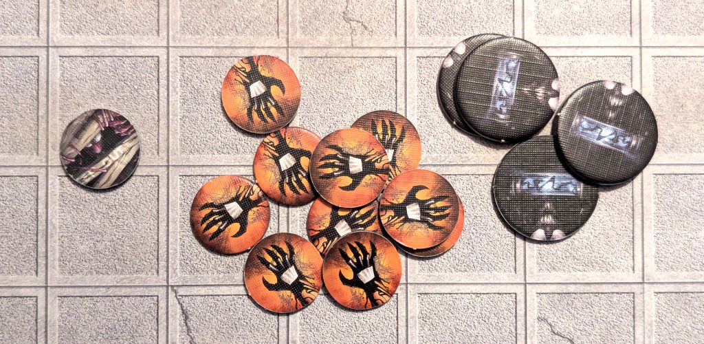 Since this is a four-person event, we have modified rules for Priority and Activations while playing this scenario. Instead of the normal Priority rules, we have a new Priority Tracker card which will be used for tracking who’s turn it is. Players begin the game by randomly selecting designated faction tokens out of a bag and placing them in order on the Priority Tracker. As the game plays out in the same alternating activations style, continuing to each player on the tracker until all of the players characters have activated. As players finish their turns, if all of their characters have Activated or Daze tokens, they then move their Priority token down to the first available Next Round slot on the Priority Tracker. During the Clean Up Phase, any effects that need to be resolved by players are completed based on the order of the Next Round section and then all of the tokens are moved up to the Priority section of the card.