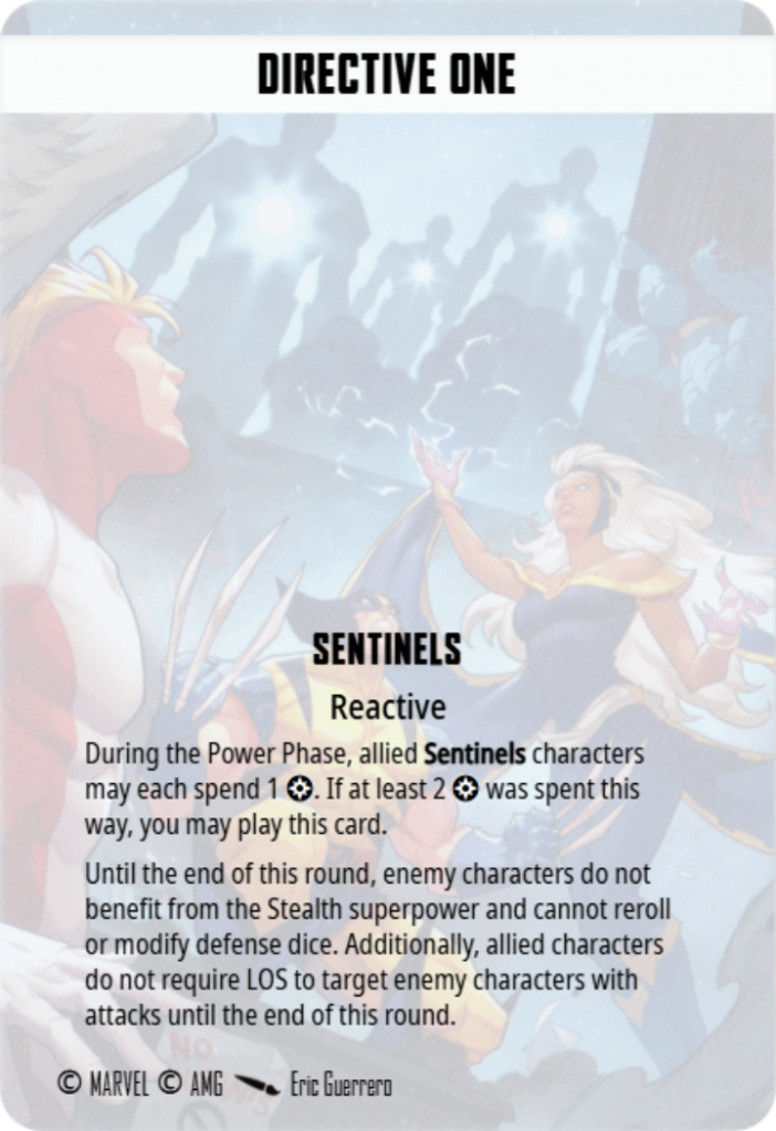 One is to allow them to benefit from Efficient Machines. That could be cool on a character like Gambit, who really excels when he rolls Wilds. Another is to have an extra character who can pay for Directive One (see below), but that card is so cheap I’m not sure it matters.