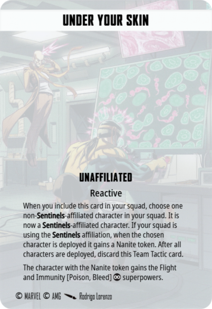 You’d be forgiven for thinking that this card makes another character affiliated for the sake of having >51% of your squad affiliated, but it doesn’t. From what I can tell, there’s only a couple uses for making someone Sentinel affiliated.