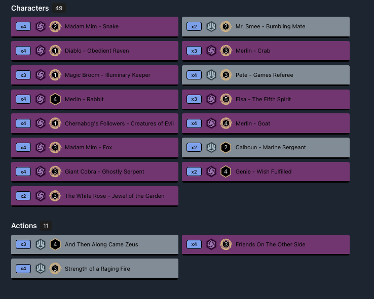 So I loaded up a Ruby Amethyst netdeck that was billed as winning a set championship 7-0-2. Absolutely not my kind of deck at all because it doesn’t lose half the time, and it is in fact the exact kind of deck that I grew to despise playing against in league. You know the one- the whole Madam Mim/Merlin bounce package that has dominated the meta since Rise of the Floodborn, the 4 Be Prepareds, a smattering of more recent cards that made this predatory and sometimes oppressive deck a right bastard to play against with one of my fun-first builds.