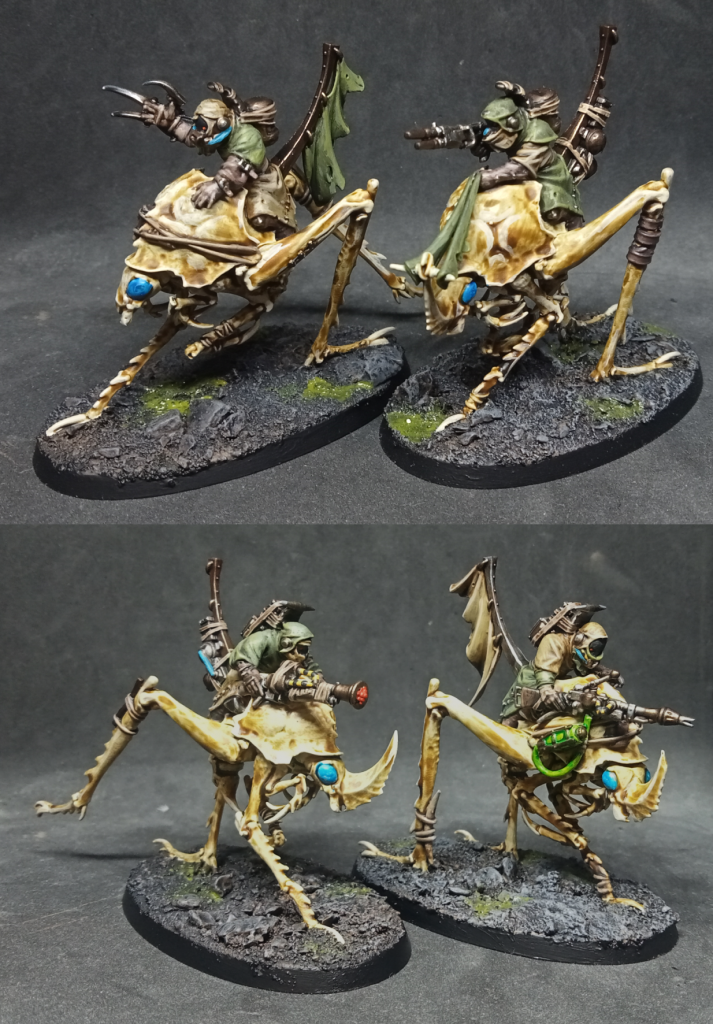 These are included on all fighters which aren’t locked onto their Helamite mounts. It lets the model take the Hide in the Wastes Double Action, provided they are more than 12” from enemies, which lets them become Hidden. This works even when Pitch Black rules aren’t in effect (ostensibly, see below), and is cancelled if they move. Rules jank alert! Sky Mantles and the Hide in the Wastes action have come in for a lot of rules debate since the Tribes book was released. There are several overlapping issues: