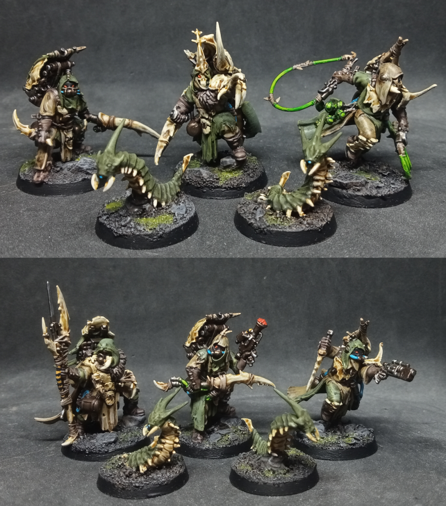 Upgrade: Venom Sacs. This is kind of like a Chem-Synth. On Activation, a Standing fighter can take an Initiative test (so usually 3+) to reduce enemy Toughness by 1 against their Toxin weapons, essentially a +1 to Wound roll effect. But Venom Sacs cost 35 credits (Chem Synths are a mere 15 – hiver privilege!), which is significantly overpriced and guarantees they won’t be taken until late in a campaign. A Hunter’s Initiative could easily be made a 2+ for reliability with a cheap Advance. This upgrade might be something to consider if lavishly equipping a Hunter with paired Venom Whips or Staves. But that’s a lot of credits for what is still relatively light melee power. Rating: C
