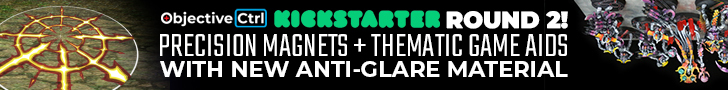We originally ran into the Objective Ctrl team at NOVA last year and we were pleasantly surprised to find that, after a successful initial run, they were doing a second Kickstarter for a new round of game aids and precision magnets. This new set have anti-glare material and different themes to pick from, so if you’re not a fan of “fully transparent terrain mats,” these may be more your speed. There are also new 3D-printed bases, STL files, Magnets, and unit markers, so there’s plenty to add to your order.