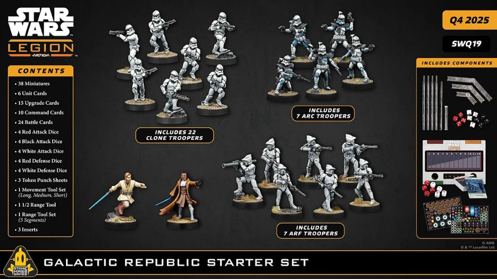 This box might look slightly confusing because you get two guys with lightsabers but the one that isn’t Obi-Wan is just ageneric upgrade that can join one of the clone units. All the models here are brand new in plastic and you get a Commander and five units with two Arc Troopers forming a sniper team like other faction’s scouting units typically do. Once the rules for generic Jedi come out you’ll be able to use that guy as an Operative, but not just yet!