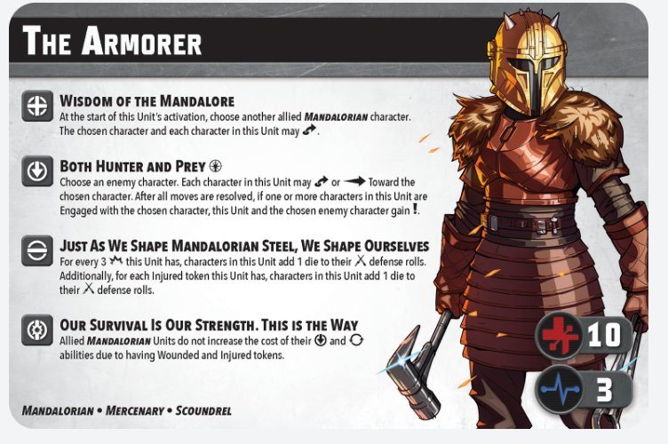 Welcome to the Mandalorian deep dive and the wonderful primaries that lead it. Today we are discussing The Armorer and The Mandalorian as leaders of an incredibly consistent and resilient team. If you are ever in doubt on what to play, consider the might of Mandalore as they have a splendid balance between mobility, offensive capabilities, and sturdiness.
