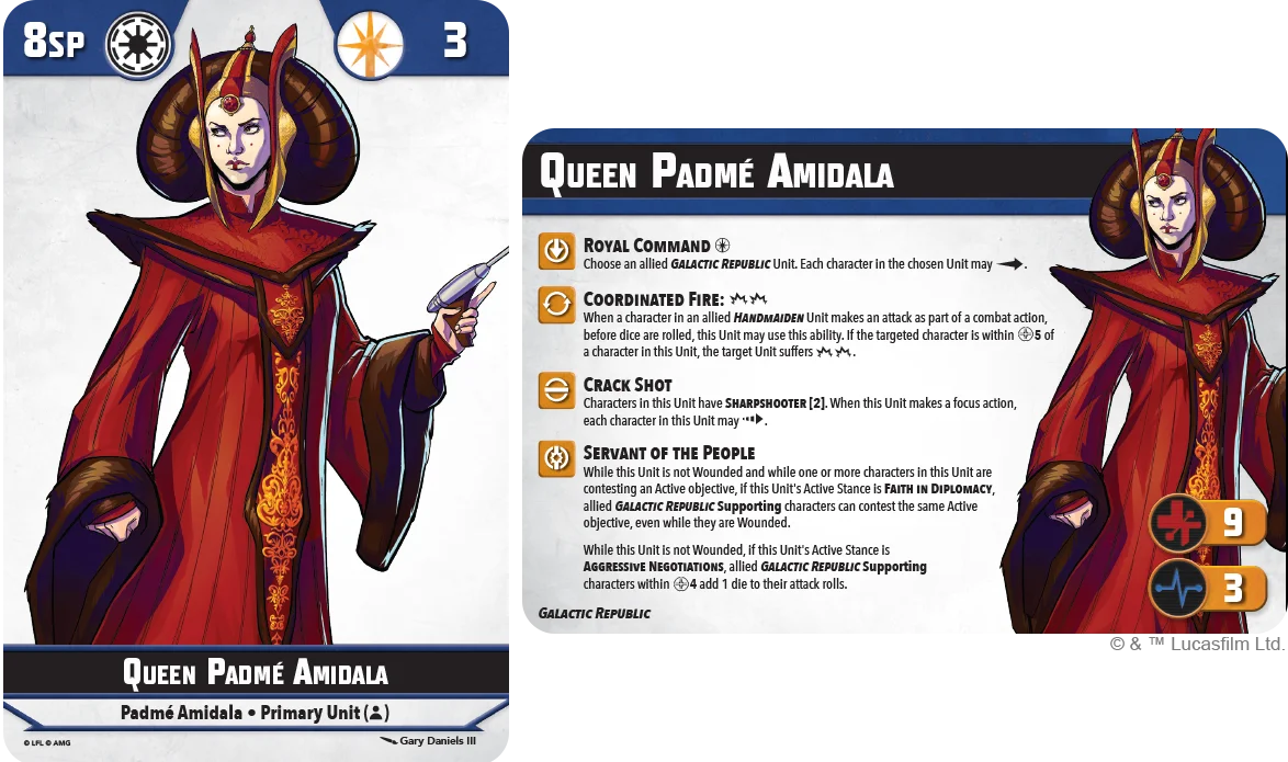 A flavorful combination. It’s hard to get a core Republic Roster without dipping into multiple boxes, but Padmé provides some solid ranged support to Anakin and Rex helps get more out of Sabé’s powerful Tactic ability.
