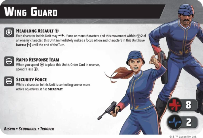 The security force of Cloud City is composed of the Wing Guard. This unit only costs 3 pts so immediately you know they can fit into most lists. At the same time, 3 cost units tend to be on the weak side and might not be worth your time. Let’s see what the guards have to offer!