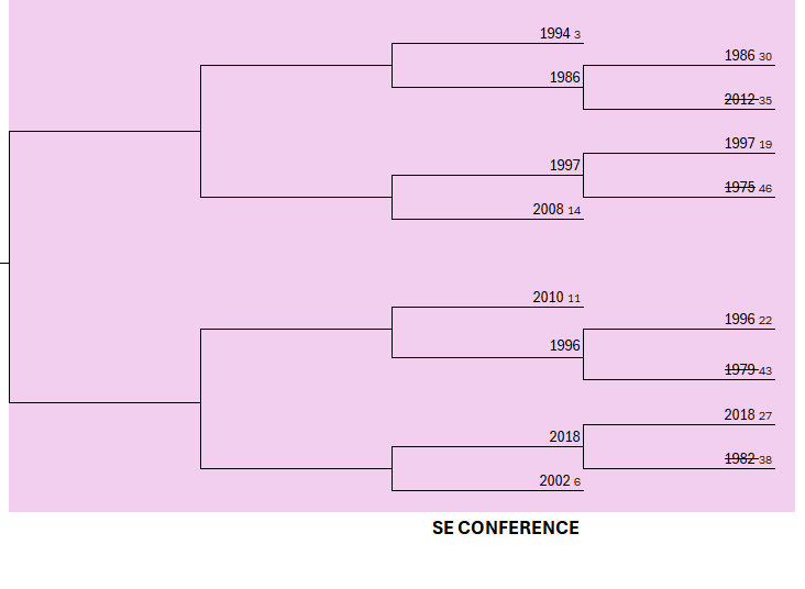 If you’re interested in voting on the outcome, head over to our Patreon and join our Discord server to vote. Otherwise, check back tomorrow for the winner and the next matchup in the Southeast Conference.
