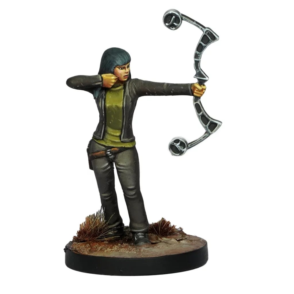 Dwight blazes across the board with speed and deadly precision, striking fast before the enemy can react. – Our second Dwight miniature, and on a bike no less. Unless I forgot about it, we have not had bikes yet in the game; only horses and ATVs. That said, I assume that, similar to those, the bike will be fast but loud, maybe able to run over Walkers and Survivors.