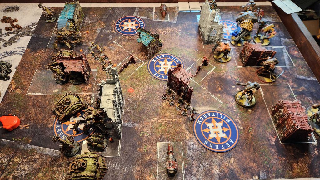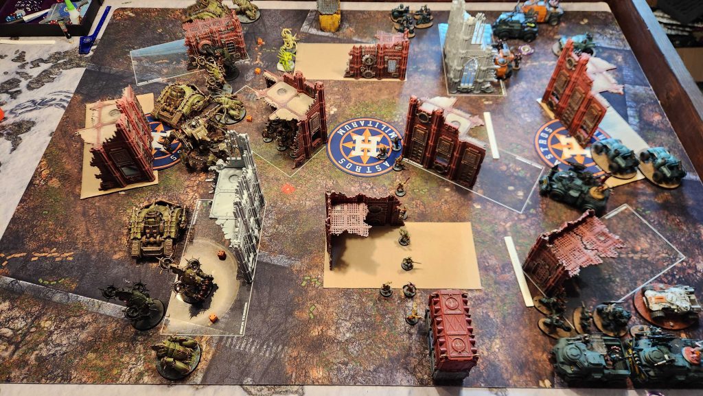 T had some early luck in this game that kept it closer than I think it was – some wild explosions in my backfield from destroyed vehicles ate a ton of wounds off my Defiler and my tanks which he was able to capitalize on – but overall it wasn’t a good matchup for him.