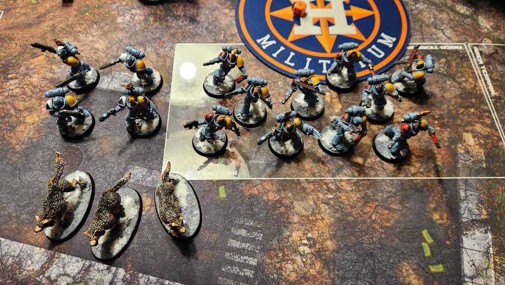 That’s ten Blood Claws, four Grey Hunters, and three wolves. It looks like a slowed pace, but there’s some stuff in the mix I can’t show you yet (come back Saturday for those), and I have the other six Grey Hunters about 50% complete as a batch right now, so I’m making good progress there. Plus I’ve got some basic work done on the characters as well.