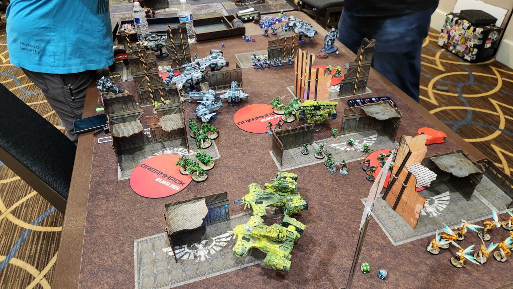Judging the 40k GT was a bit tougher because while I didn’t think there were any 10/10 armies there, there were definitely multiple 8/10 armies and we had prizes up for grabs for best painted and best overall. As fate would have it, both players in contention for Best Overall played each other in the final round, and the third contender lost his final round game, making it easy to award the two other players Best Overall and Best Painted, respectively.