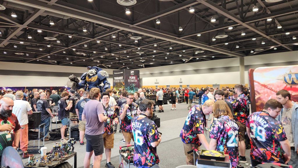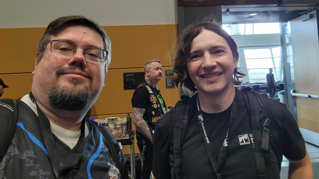 While I’m waiting for the event to start and Brandt is doing his famous “you’re all losers” speech, I’m greeted by Ryan, who I’ve played against at prior Tacoma events. It’s always great to meet up with people again at these, and we talk for a bit about this year’s plans and what we’re bringing. The big strategy is just “Don’t play too many knights armies,” because there are a lot of knights armies here at Tacoma.