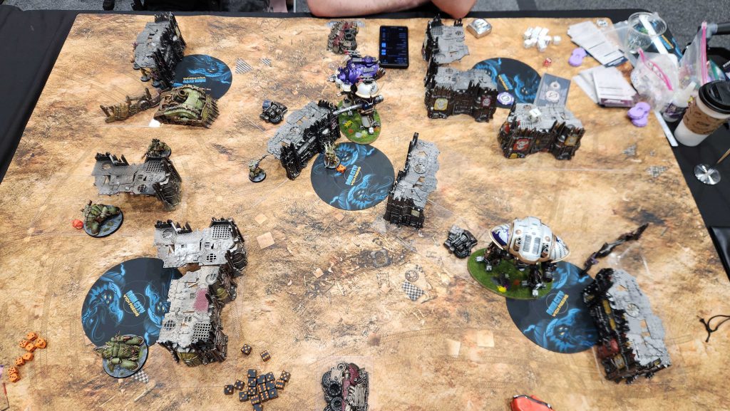 I’m still alive in the 3-1 bracket and that’s kind of neat, though ultimately means very little. If there’s one thing I don’t care for with the GW Opens, it’s prize support. I’ve gotten better prizes at local RTTs. They’re the best run events in the world, but man that prize support feels so stingy coming from a company of GW’s size. I’ve already gotten my plaque for winning the Captain’s Bracket and I have my Golden Ticket this year, so today is a bit more chill.