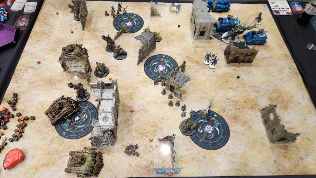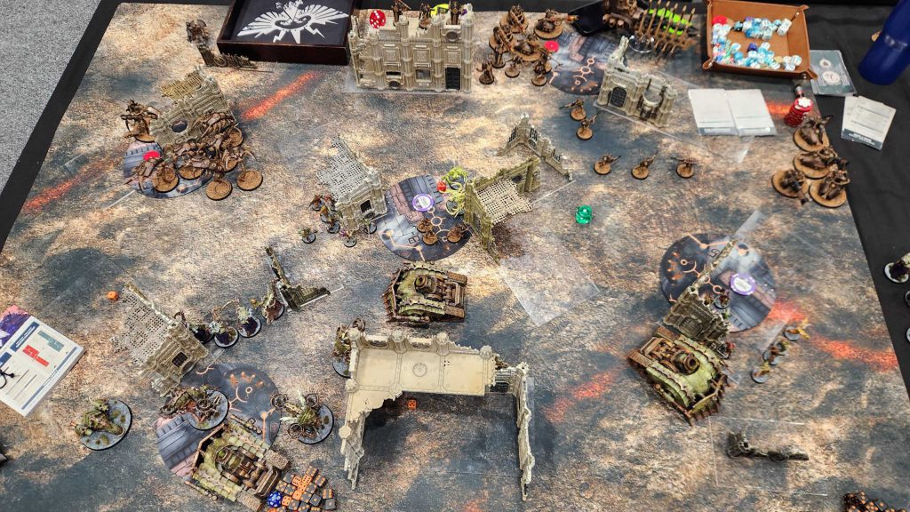 Or so I thought – Randy put up a hell of a fight, keeping me in my DZ longer than I expected and making me work for every inch of the table. Every time I thought I’d just finally break his army open, he’d pull some new trick to stay in it. It was very respectable… and very annoying (though I mean this in the best way). That said, I still just had Too Many Units for Too Cheap, and I was able to burn Randy’s home objective on round 3, them move to the others after. We played this one to the end, and it was closer than the score makes it look.