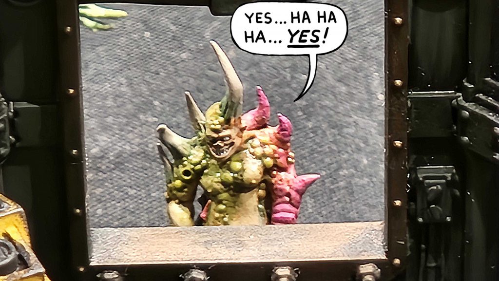 Two Mutaliths, but no Magnus make this a dangerous but not crazy list. I have to worry about getting out-ranged by the Tzaangors early, but if I can prevent Randy from stacking debuffs early when shooting his Tzaangors they aren’t so scary. You really need re-rolls and Twist of Fate AP debuffs for them to kill big vehicles.