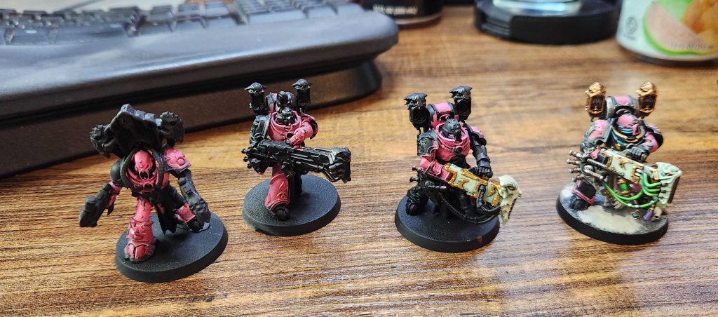 On that note, this week it’s Noise Marines. I’m trying to get at least half the squad knocked out by next week, plus the Lord Kakophonist. Painting these guys is not going anywhere near as fast as I would like and I need to just sit down and force myself to put an hour or two of work into them each day to ensure I’m capable of hitting deadlines. There’s just so much work that goes into each model and while I love the effect, it causes the final steps to drag so much.
