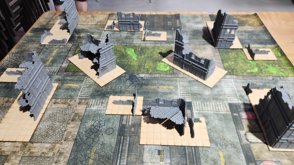 Also worth noting: This event had brand new terrain that was a huge step up from the usual terrain at Ettin. It was all 3d printed and they’d just finished having it made. So it wasn’t painted but I’ll take great unpainted terrain over bad painted any day. What’s notable about this particular terrain is that it folds up extremely well, and I was very pleasantly surprised by how little space it took up when folded.