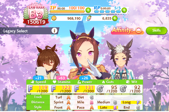 Sprint is my favorite length in the game. I think the racers are all deeply unique, all with different styles and different personalities that make fun strategies and considerations on builds and techniques. It also helps that two of the best sprinters are easy to obtain, with one being given to you by default, but even the SSR Sprinters can be a blast: Curren Chan is a unique trainee, and if you happen to obtain her, she can your strongest Sprinter with some tactical training. Sprints also make for good training measures of your ability to meet specific goals and better refine the training cycle, as they are slightly more unforgiving than other lengths. Mile and Medium races can be a little more giving as they have to balance different stats just slightly, but Sprints are all about Speed and Power, and not having enough of either is a surefire way to see your racer barely cross the finish line.