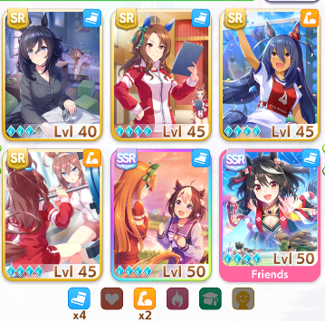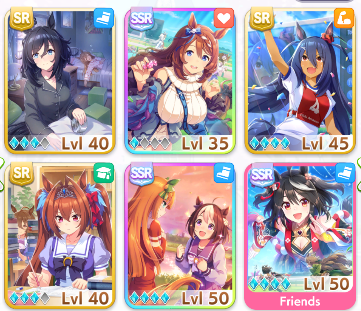 As for Power Cards, Hishi Amazon’s SR, Vodka’s SSR, and Mihono Bourbon’s SRs are all good choices if available. These cards provide generally beneficial skills (some of which are positional), but also have helpful events and good training stats and benefits. At the end of the day, you want a deck with four Speed and two Power of your best available cards; as a final beginner note, more Unlock levels are better than fewer, meaning an MLB Eishin Flash SR will be better than a 0LB SSR speed card; keep in mind what you have, and what you can use, when building your deck. SSRs aren’t always better just because they are SSR!